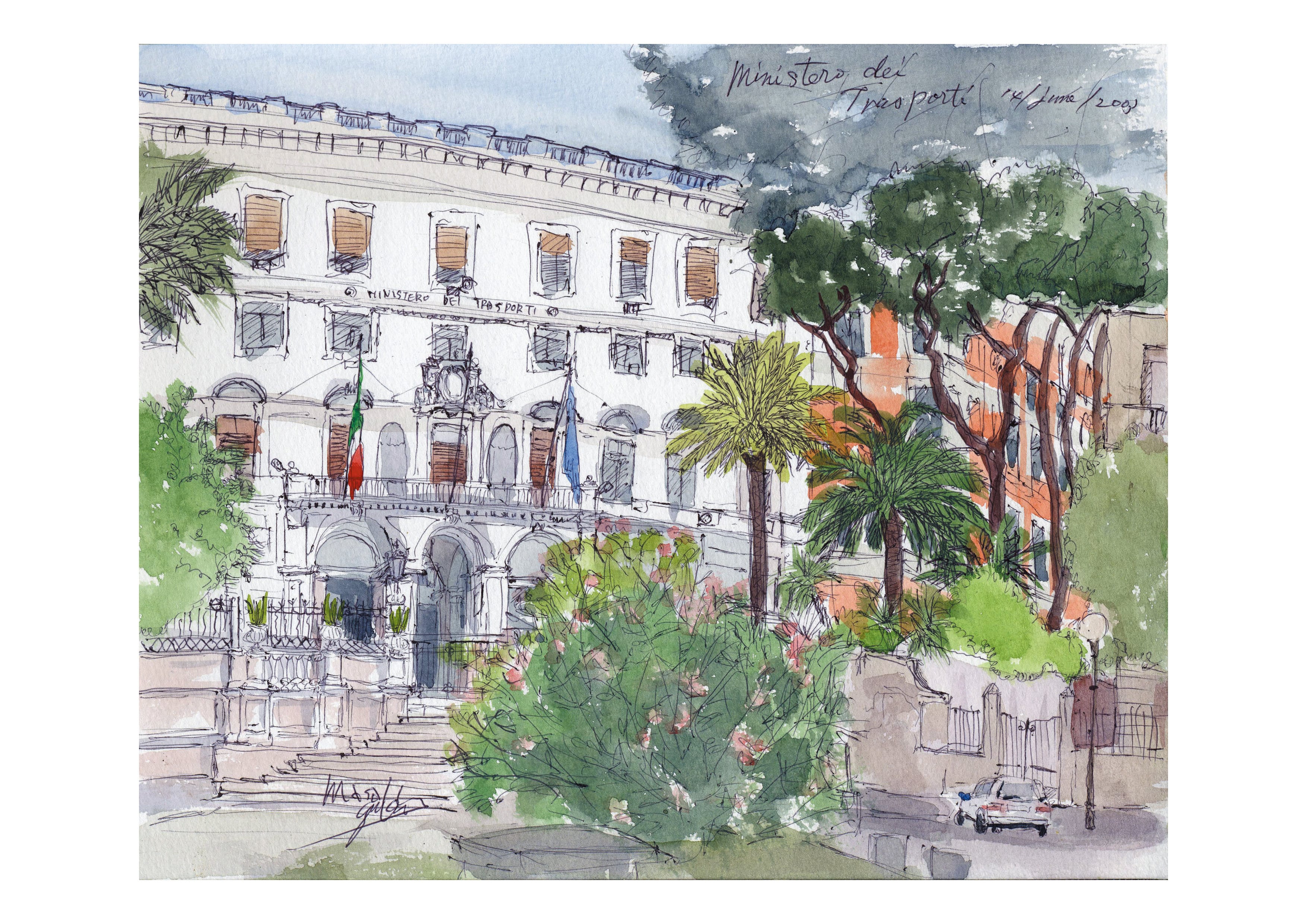 三枚目はローマ中心部にある官公庁、イタリアの国旗がはためいています。