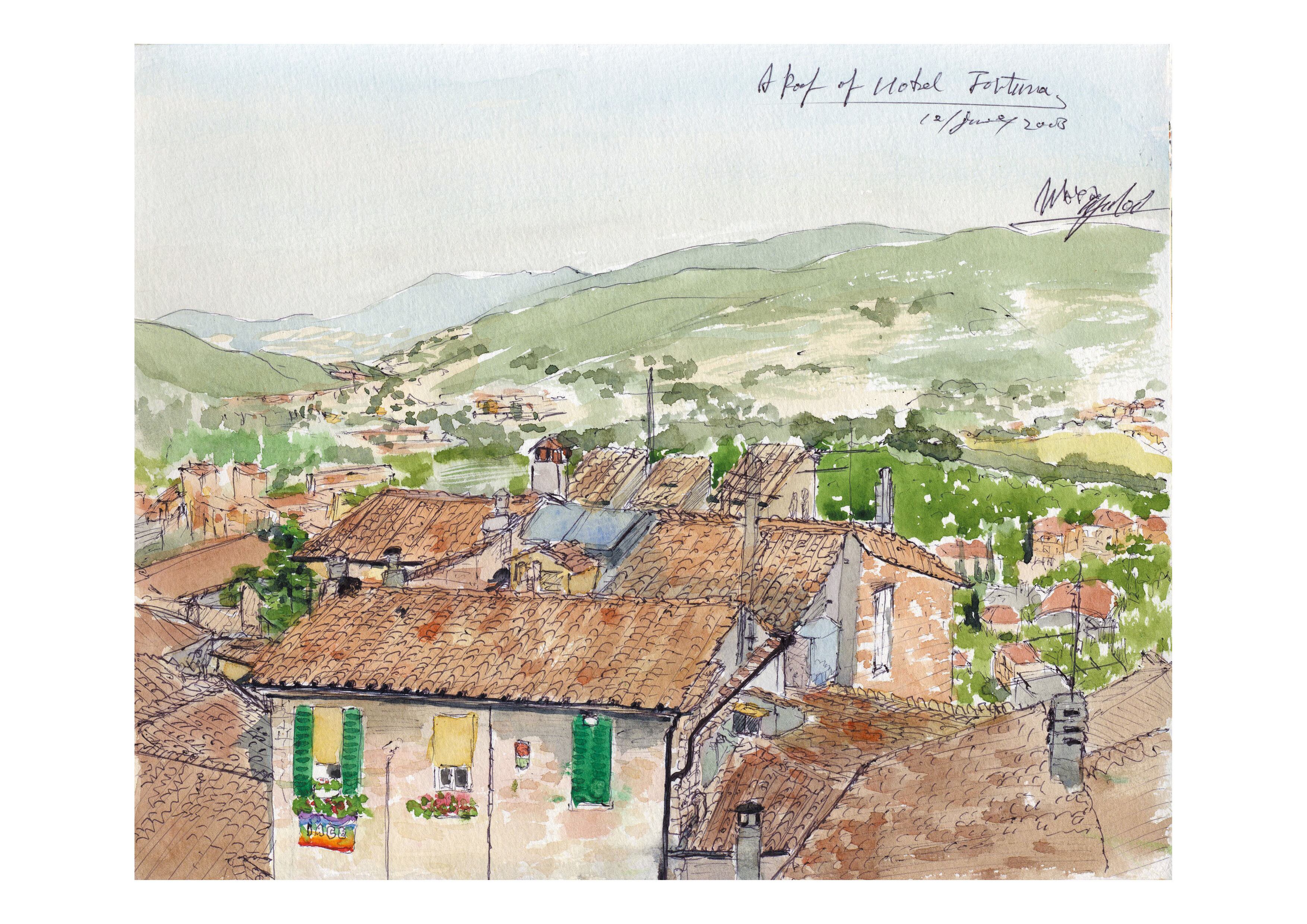 「セレネッラの咲くころ」の中島雅幸が現地でスケッチしてきた水彩画のコピーです(原画ではありません、厚紙のマット紙にインジェクトプリントしたもの)です。